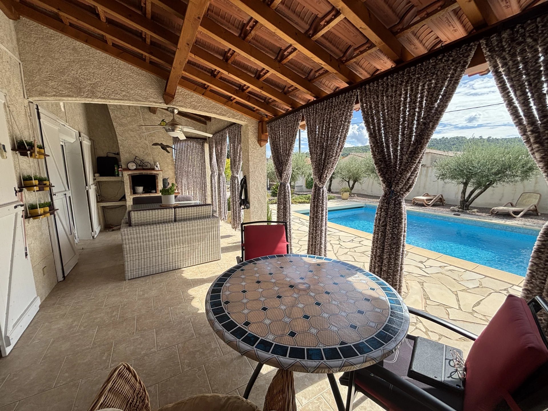 Un grand garage attenant avec mezzanine, ainsi qu’un abri voiture complètent l’ensemble.